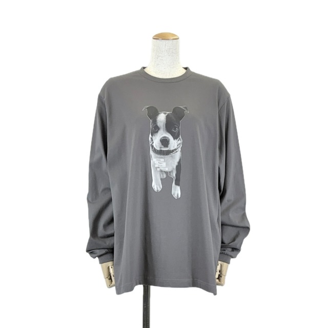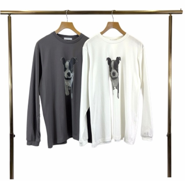 愛らしい子犬のフォトプリントが目を惹くロングスリーブTシャツ