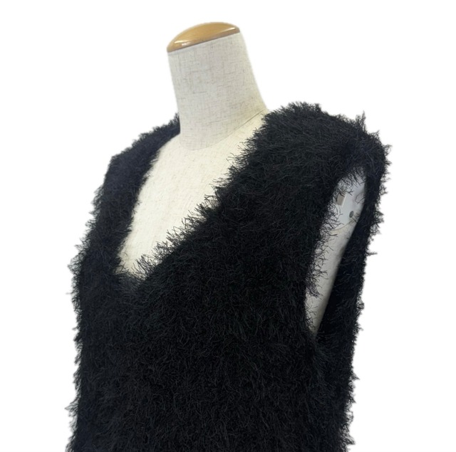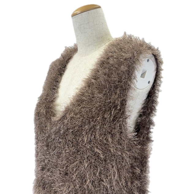 毛足の長いシャギーニット素材を贅沢に使用したふんわり感が魅力のショートベスト