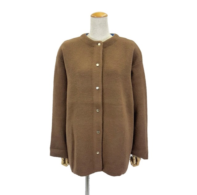 ふんわり柔らかなウールライク素材のノーカラーカーディガン
