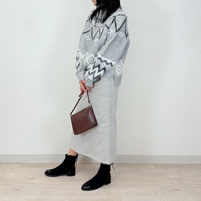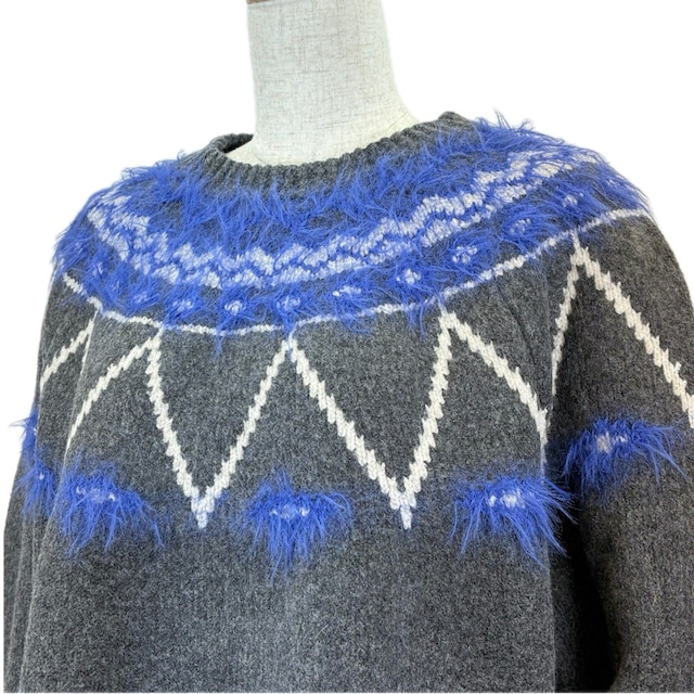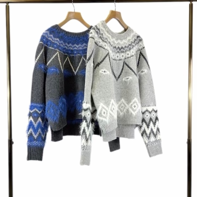 ふんわりとしたシャギー糸を織り交ぜたジャガード柄ニット