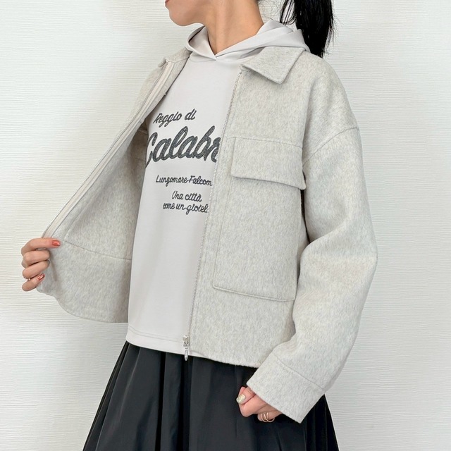 ジップ開閉でさっと羽織りやすく、デニムからスカートまで幅広いスタイルにマッチする、オン・オフどちらにも使える、上品カジュアルアウターです❣️