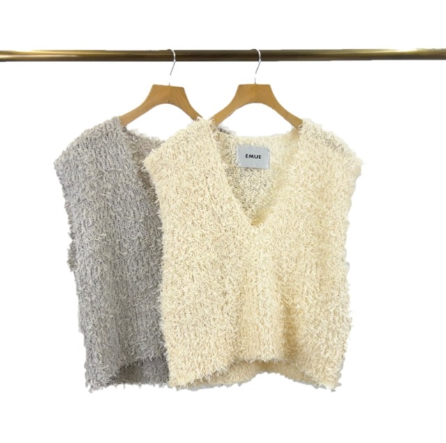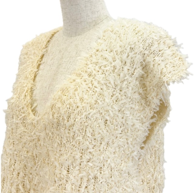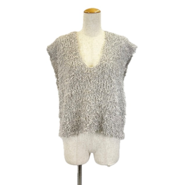 テープ状の糸をふんだんに使用した、表情豊かなシャギー素材が魅力のニットベスト