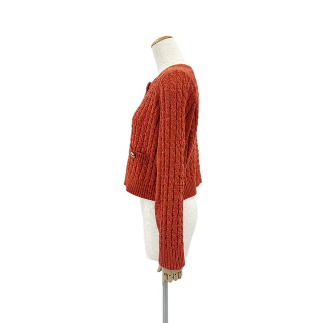 立体感のあるケーブル編みとモール特有のふんわり柔らかなタッチが魅力のニットカーディガン