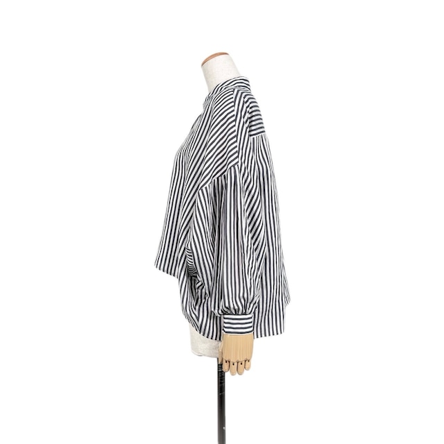 ストライプの切替デザインとクロップド丈が今っぽい存在感のあるブラウス