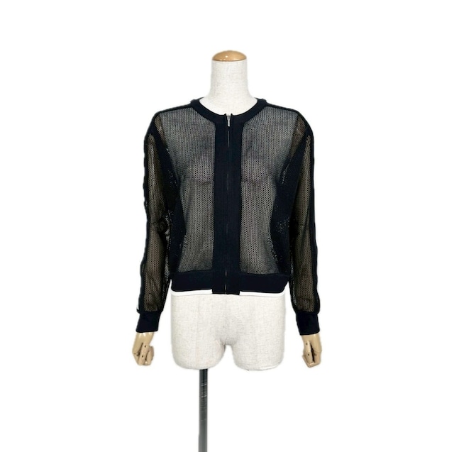 トレンド感のあるメッシュ編み素材のジップアップブルゾン